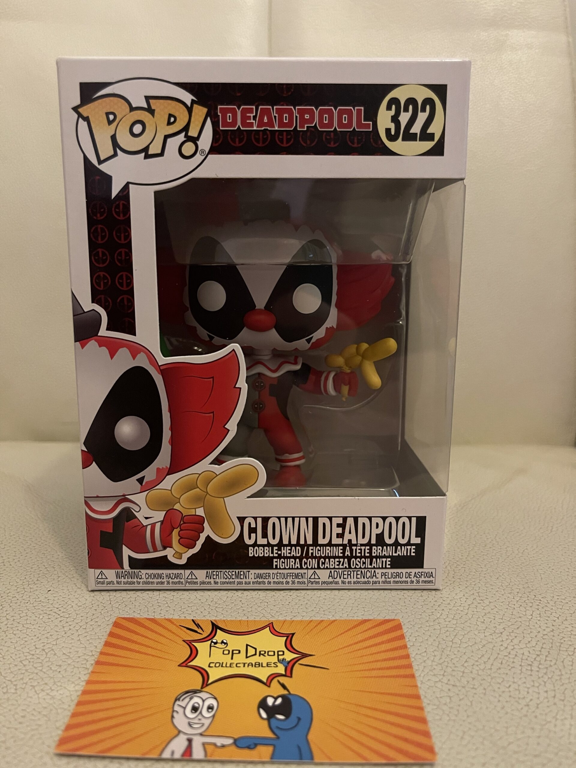 Clown Deadpool #322, pop vinyl figure in great condition as seen in photos. Add this great collectable to your collection today!