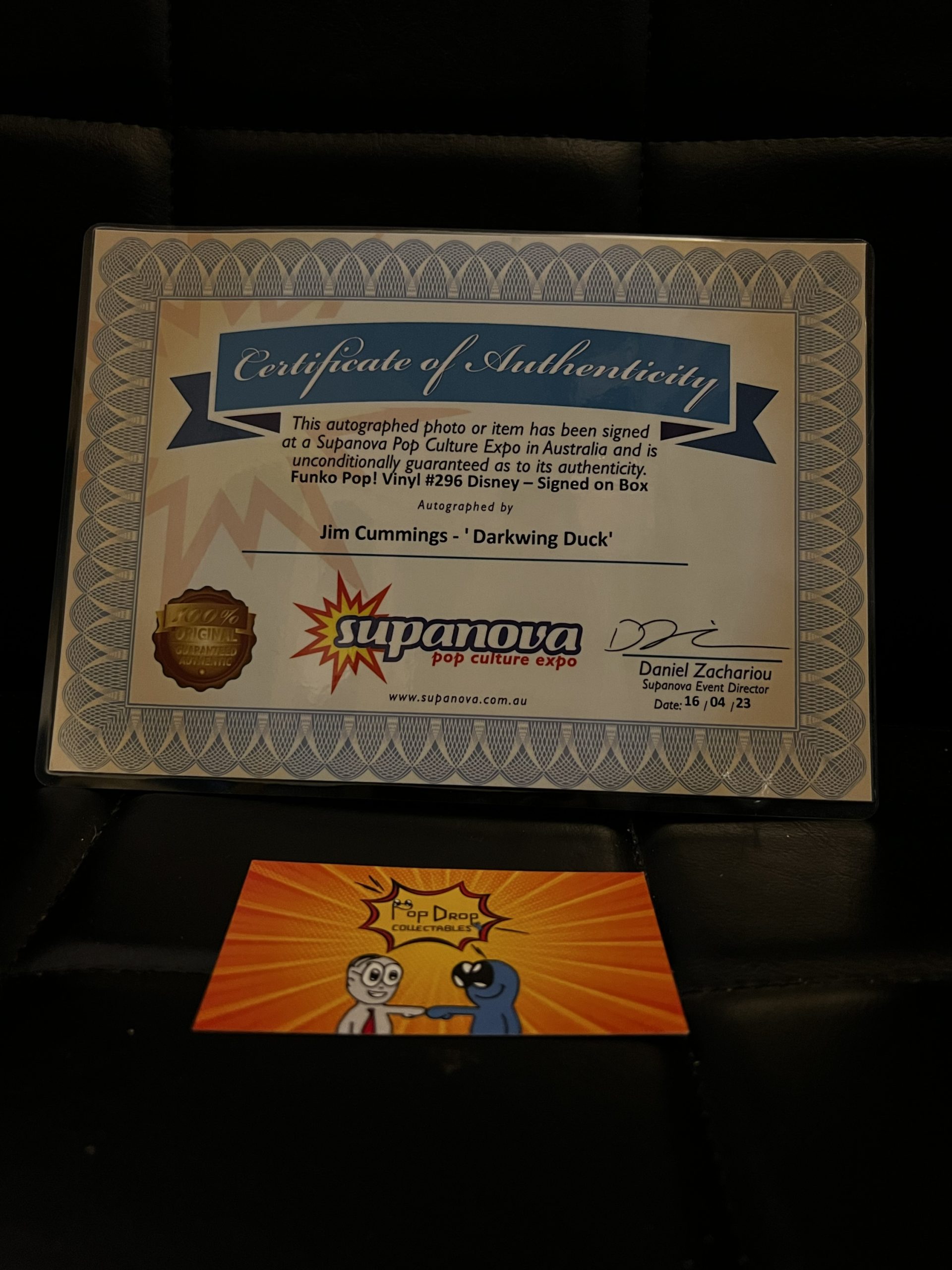 #296 Dark wing Duck signed pop by Jim Cummings! Comes with certificate of authenticity!